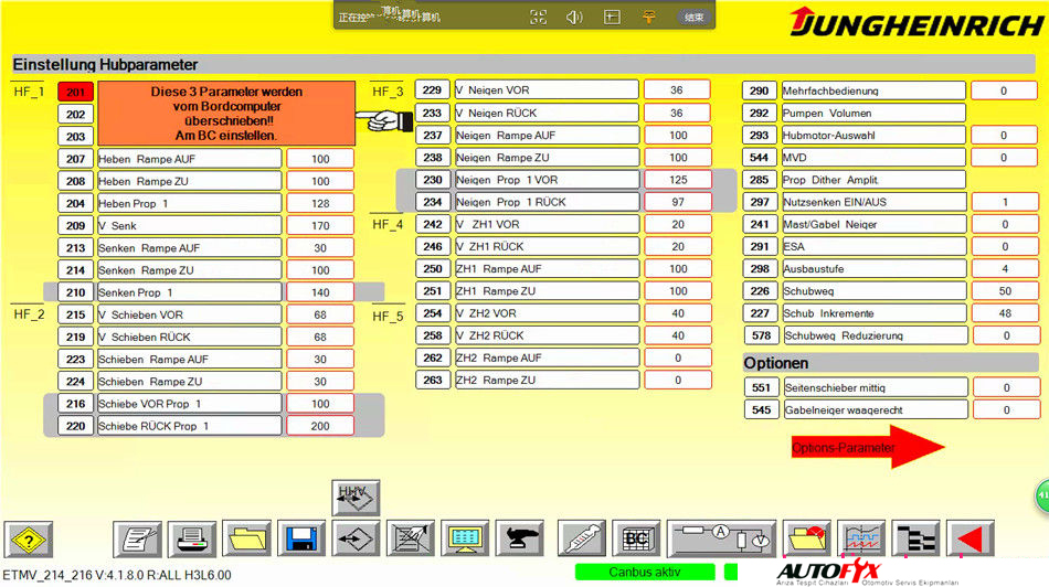 Jungheinrich Arıza tespit Cihazı, tüm Jungheinrich forkliftler ve transpaletlerde teşhis yapma ve parametreleme yapma olanağı sağlayan bir cihazdır. Bu arayüz, Jungheinrich araçlarında parametreleri görmek / değiştirmek, teşhis değerlerini ve hata kodlarını görmek / silmek için kullanılabilir.